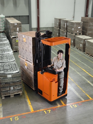 Ochranný rám řidiče přináší spolu s vylepšeným výhledem bezpečnější pracovní prostředí, zatímco zdvižná podpěrná ramena usnadňují bezpečnou jízdu po nerovných a svažitých podlahách a umožňují také dvoupaletovou manipulaci.